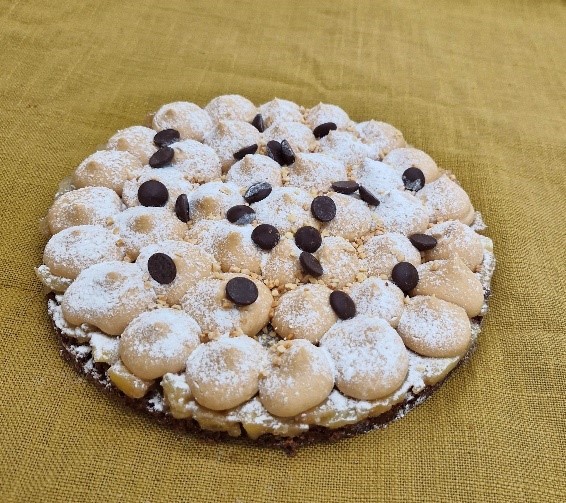 A l’aide d’une poche et d’une douille uni, dresser la chantilly sur la tarte froide